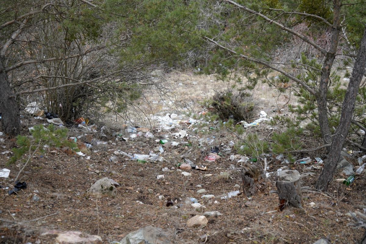 Şehre yakın ve hakim bir noktada bulunan ve doğasıyla görsel bir şölen sunan orman içerisinde yer alan çöplere yöre halkı tepki gösterirken, orman içerisine gelişigüzel atılan cam şişeler ise mercek etkisi nedeniyle orman yangınına davetiye çıkarıyor.