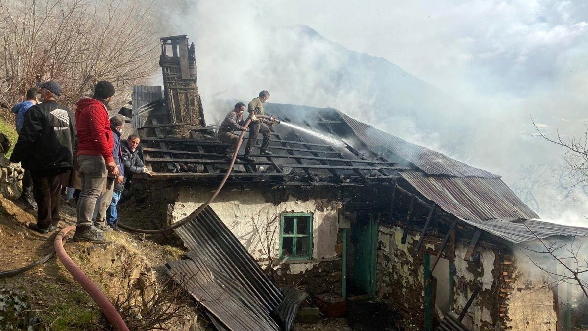 Gümüşhane’nin Kürtün ilçesine bağlı Cayra mahallesinde bir ev ve ahırda yangın çıktı.