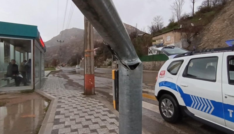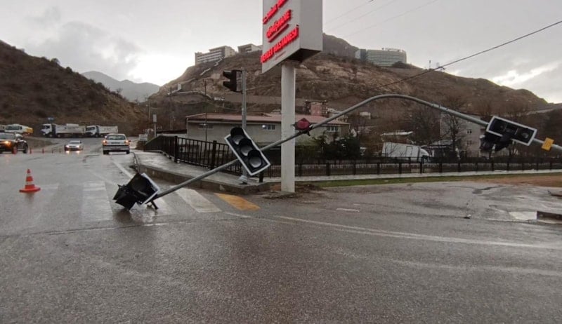 İhbar üzerine bölgeye sevk edilen Karayolları ekipleri, devrilen trafik ışığını kaldırmak için çalışmalara başladı. Yetkililer, sürücüleri olumsuz hava koşullarına karşı dikkatli olmaları konusunda uyardı.