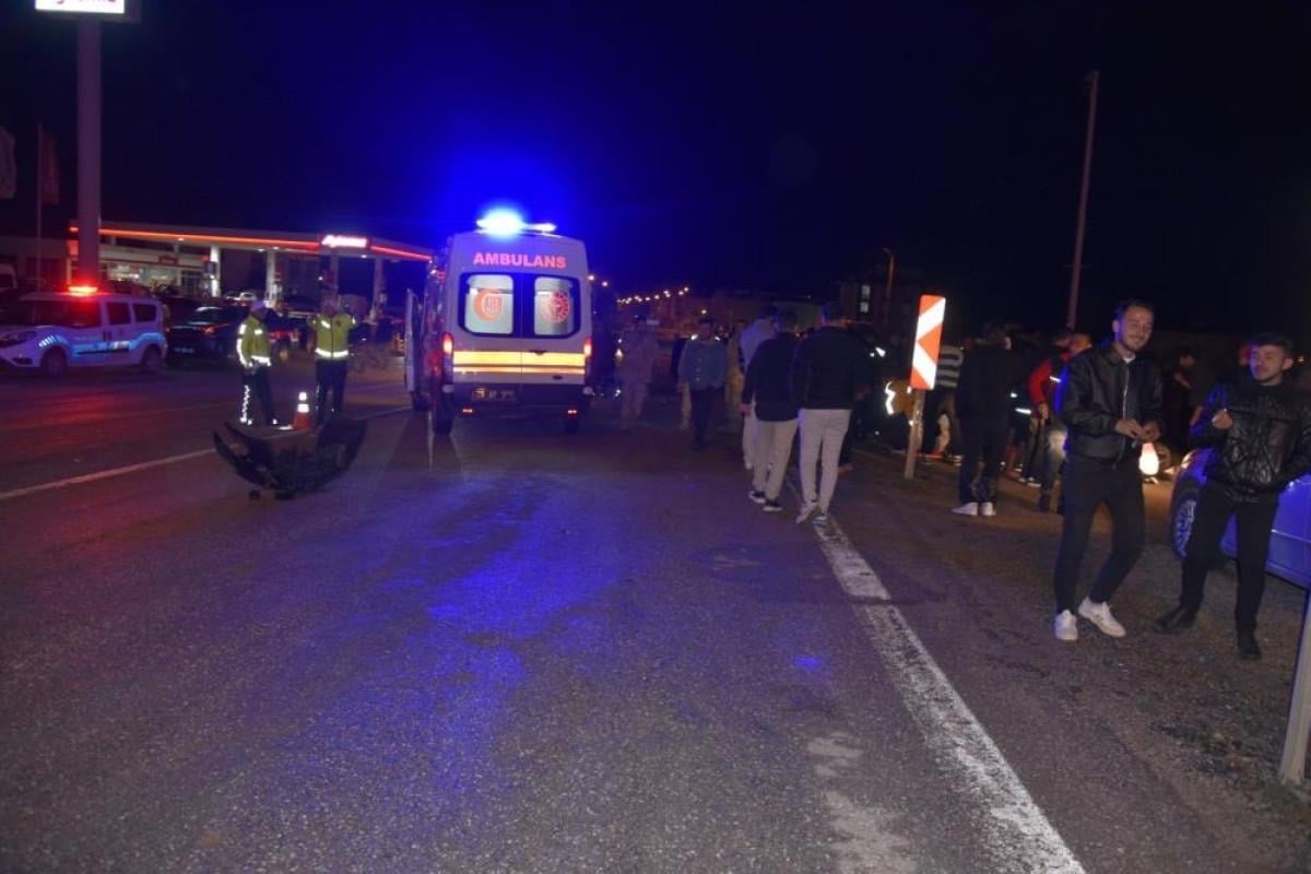 Çarpışmanın etkisiyle savrulan otomobillerden biri yolun kenarındaki 2 kişiye çarptı.