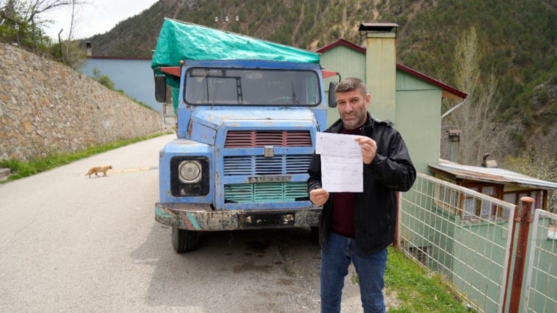Torul ilçesinde 3 yıldır evinin önünde odunluk olarak kullandığı kamyonuna 10 bin 484 TL'lik Sinan Çaklı, "Daha öncesinde de başıma böyle bir olay geldi, bu üçüncü ceza. Biz de bunun düzelmesi için sesimizi duyurmak istedik" dedi.