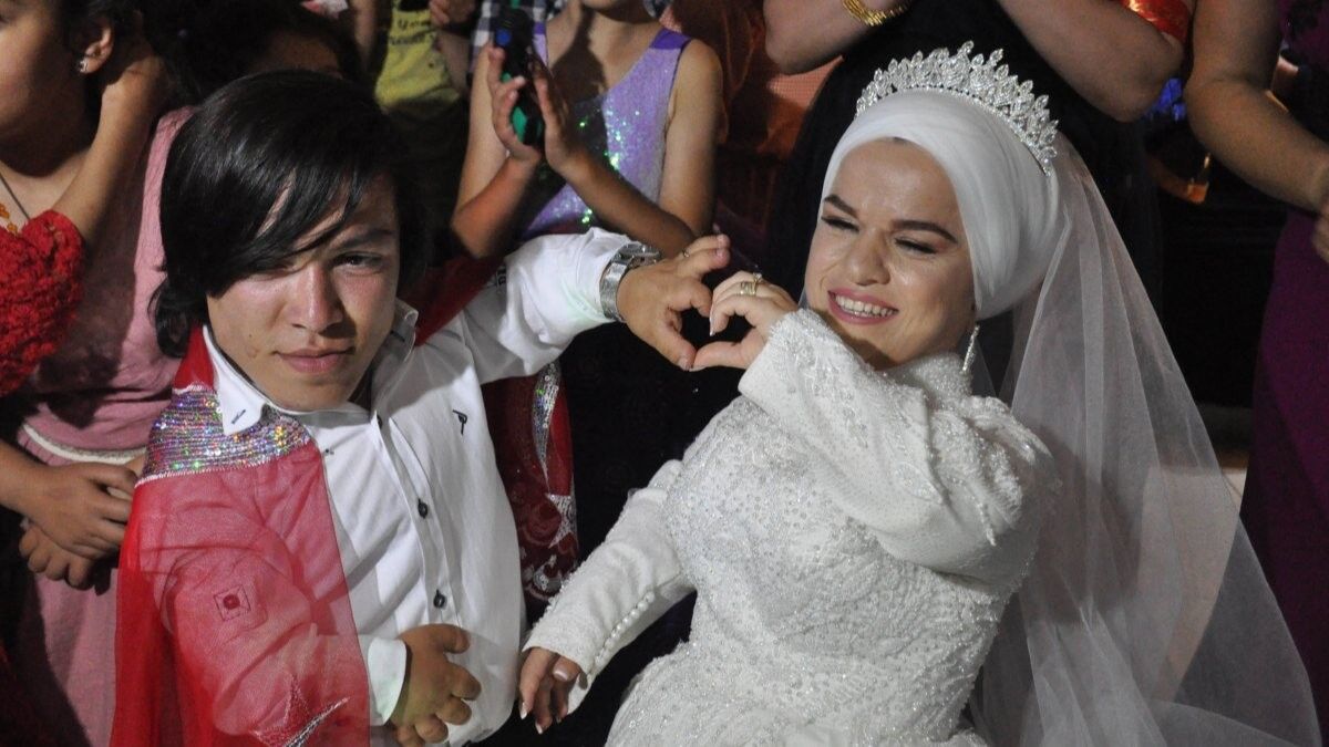 108 santimetre boyunda olan çift, bir süre sonra evlilik kararı aldı.