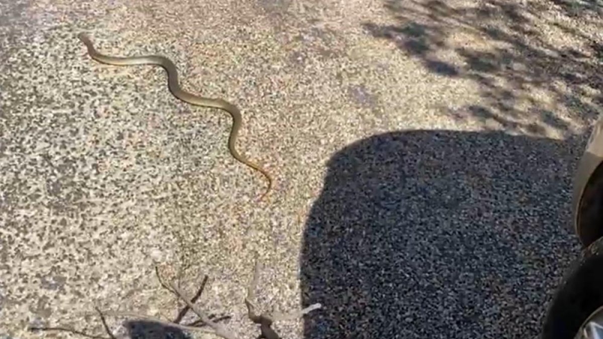 Gümüşhane'de merkeze bağlı Akgedik Köyü Gümüşlük Mahallesi'nde, araçlarıyla seyir halinde olan Serdar Gün Şişman ve Saffet Kurtarmış, yolda yatan bir yılan gördü.