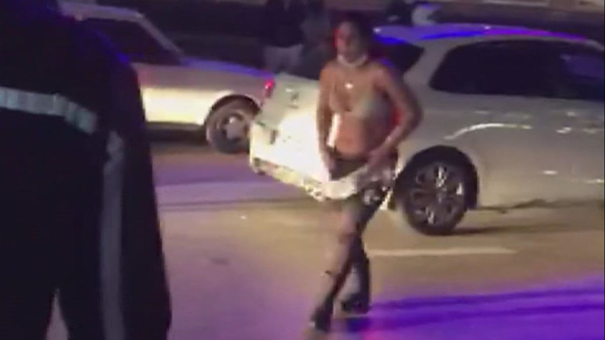 Güvenlik görevlilerince dışarıya çıkarılan şüpheli üç kadın, bu kez de Güngören'in en işlek caddelerinden biri olan Eski Londra Asfaltı Caddesi'nde soyunmaya başladı.