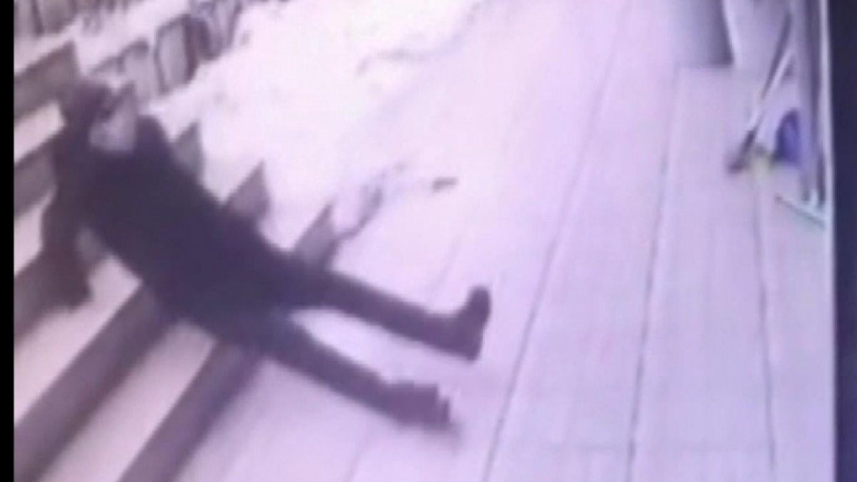 Merdivenlerden inen bir kişi ise kayganlaşan basamaklarda dengesini kaybederek düştü.