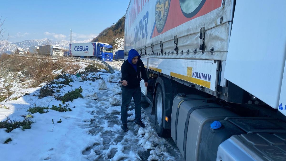Gürcistan tarafındaki kar yağışı nedeniyle sınırda tır geçişlerinin neredeyse tamamen durduğunu söyleyen tır sürücüsü Yiğit Ayaydın, "5 yıldır tır şoförlüğü yapıyorum. Şu an Arhavi-Hopa arasında yol kenarına tırımızı park ettik, 4 gündür sıra bekliyoruz. Kapının kapalı olduğunu söylüyorlar. Ne zaman açılacağı belli değil. 5-6 gündür bekleyen arkadaşlarımız var. Sarp Sınır Kapısı'nda sürekli mağdur oluyoruz. Yazın sistem güncellemesi nedeniyle, kışın ise kar nedeniyle sıkıntı yaşıyoruz." dedi.
