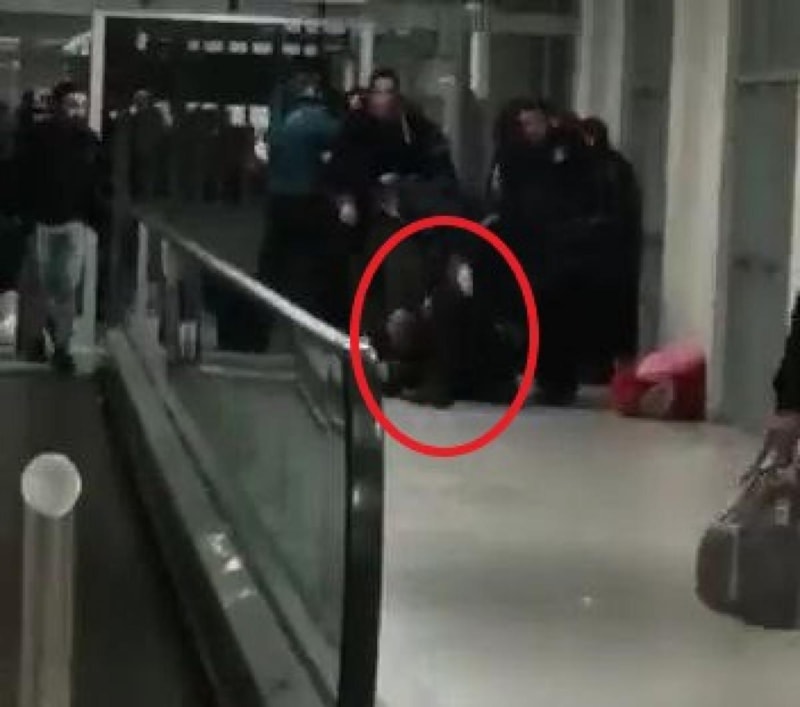 Görüntülerde gümrük muhafaza görevlilerinin yerde bir erkeğe şiddet uyguladığı, buna tepki gösteren kadına da bir görevli tarafından tekme atıldığı yer aldı.