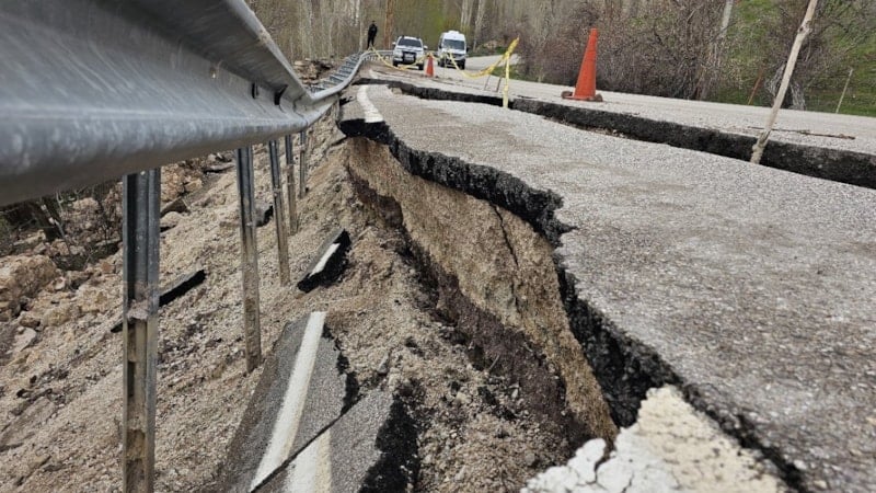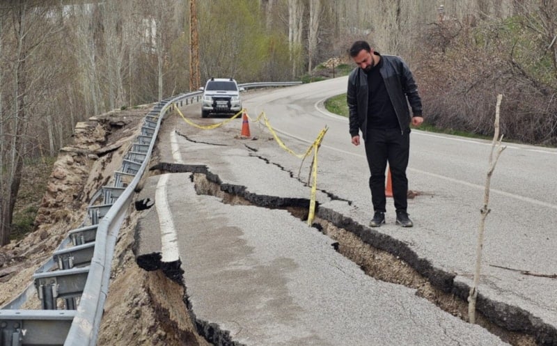 Yolda meydana gelen çökme ve yarılmalar her geçen gün büyürken, can güvenliği açıkça riske atılmaktadır.
