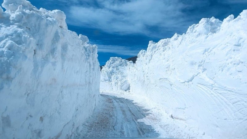 Mayıs ayına rağmen tünelleri andıran karlı yolları görenler, hayretler içerisinde kalırken bir yandan da hatıra fotoğrafı çektiriyor.