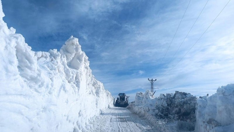 Yer yer 3 metreyi bulan kar kütleri nedeniyle zaman zaman zor anlar yaşayan ekipler, kepçe ile açamadıkları alanlarda ise ekskavatör kullanıyor.