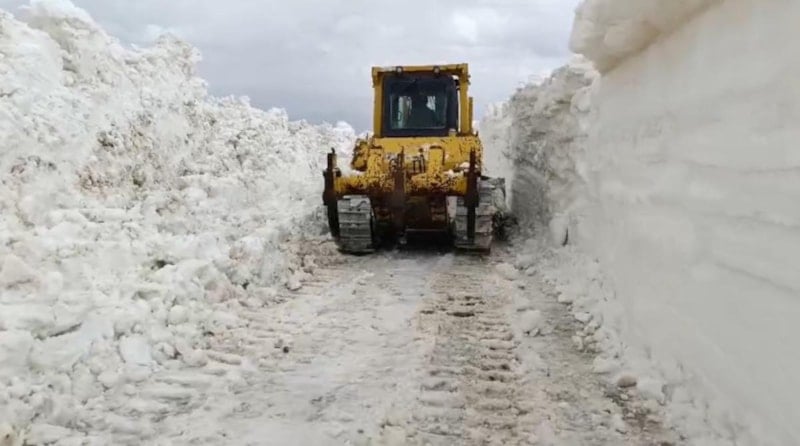 Karla mücadele ekipleri, mayıs ayında Yüksekova'nın birçok bölgesinde karla mücadele çalışmasının devam ettiğini belirtti.
