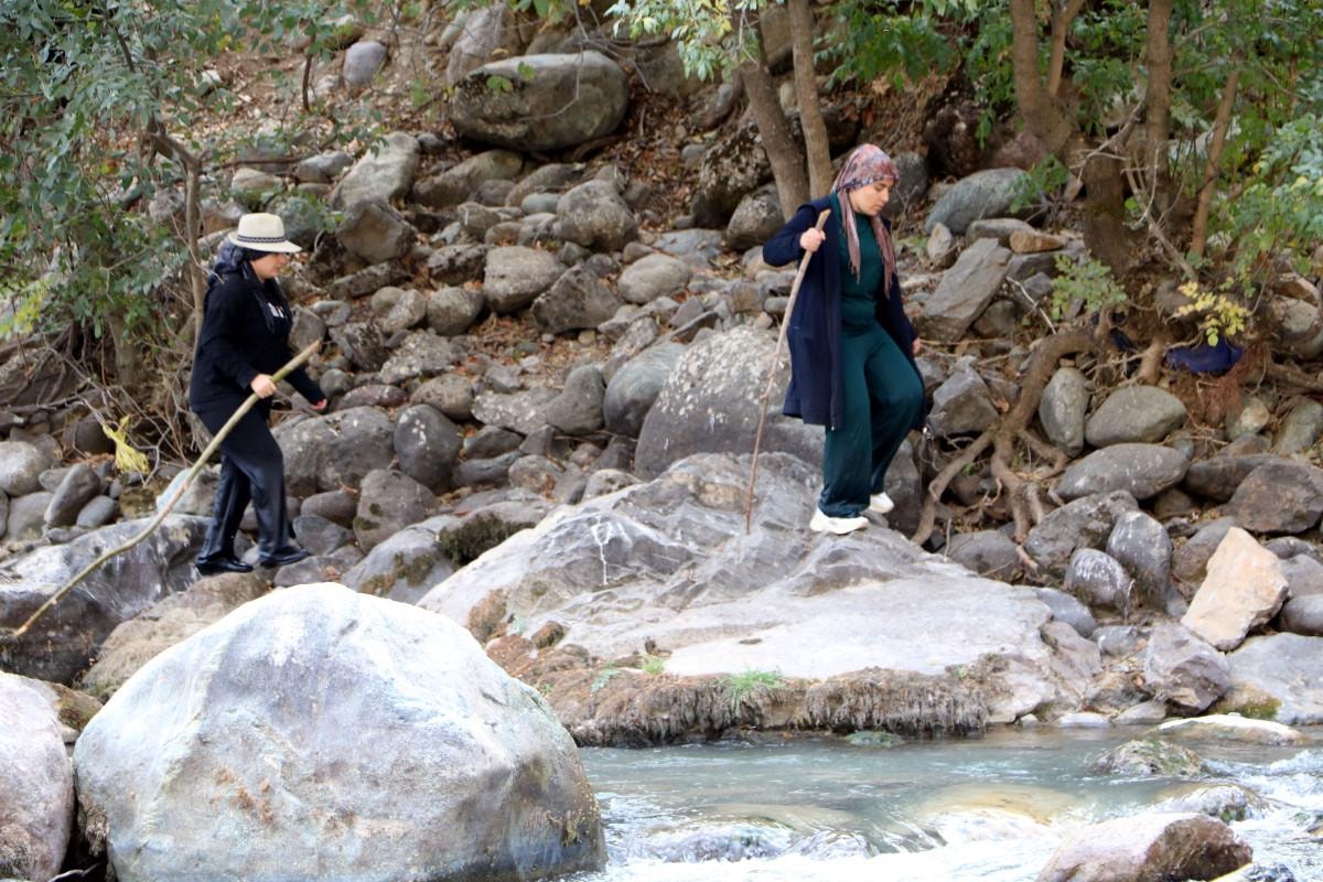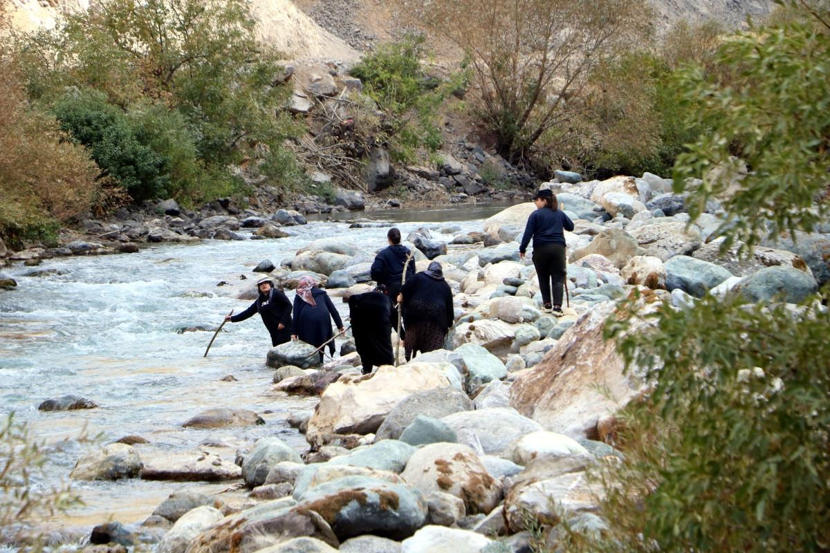 Su seviyesinin düşmesiyle birlikte derenin içindeki taşların ve kayalıkların altına bakabiliyoruz.