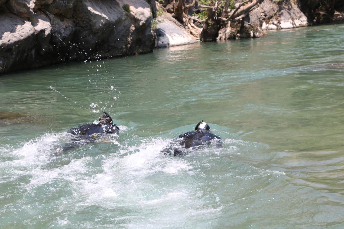 Çalışmalara Ankara'dan gelen özel dalgıç ekibi ile yine Ankara JÖAK'a bağlı 18 kişilik dalgıç ekibi, Kom'un akıntıya kapıldığı noktadan itibaren çeşitli noktalarda zorlu arazi şartlarında dalışlar yaptı.
