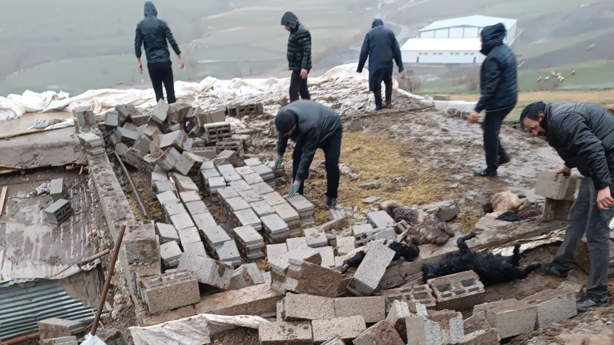 Ahırın yıkıldığını gören Halil Atış ve köy sakinleri, sabah erken saatlerde enkaz altında kalan hayvanları kurtarmaya çalıştı.