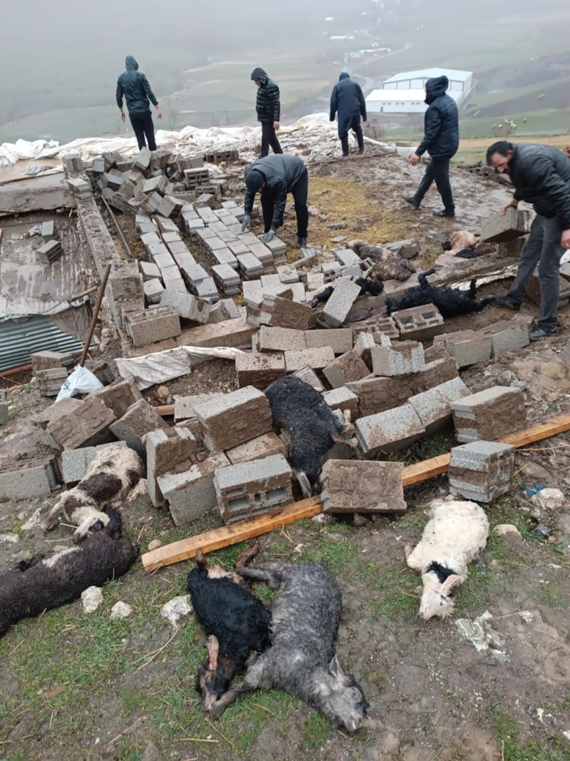 Ağılın içinde bulunan 13 oğlak ve 12 kuzu, enkaz altında kalarak telef oldu.