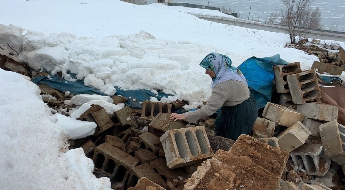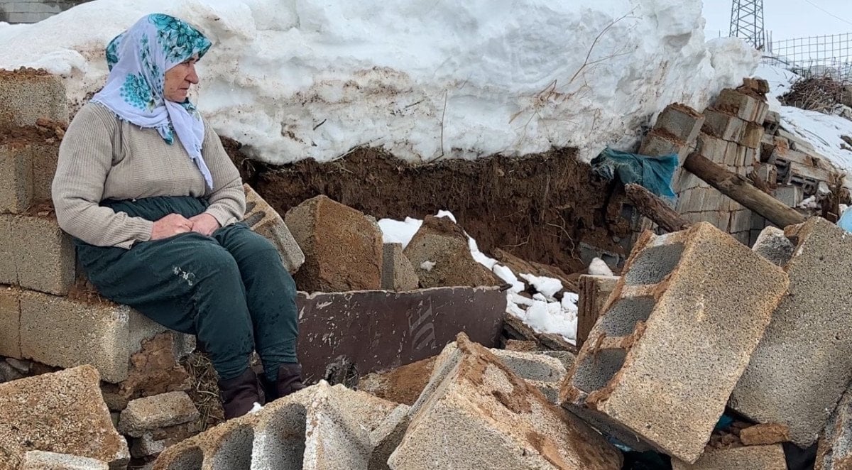 Şans eseri koyunların içeride olmadığı o anlarda dışarı fırlayan yaşlı kadın, karşılaştığı manzara karşısında dizlerinin üzerine çöktü. Yıkılan ahırının harabesi başında gözyaşları içinde bekleyen Zine Teyze, çaresizliğini feryat ederek dile getirdi.