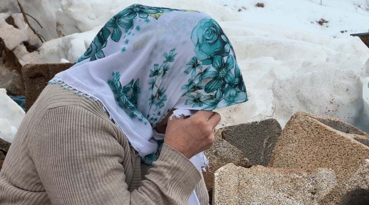 - Hakkari, Yüksekova'da yaşayan 60 yaşındaki Zine Yaşar, çöken ahırının enkazı başında kimsesizce ağladı.