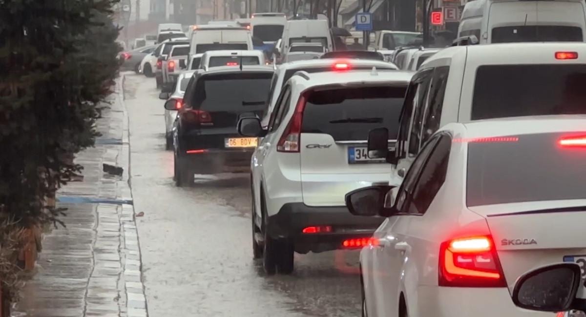 Yağışa hazırlıksız yakalanan bazı vatandaşlar iş merkezlerine girerek korunmaya çalışırken, özellikle Cengiz Topel Caddesi üzerinde seyir halindeki araçlar ilerlemekte zorlandı.