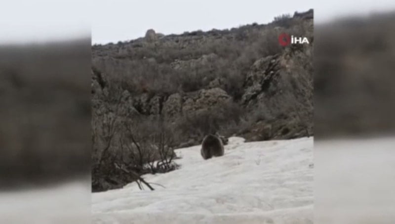 İlçe merkezine 28 kilometre uzaklıktaki İran sınırında bulunan Alan köyü kırsalında, kış uykusundan uyanan bir ayı görüntülendi.