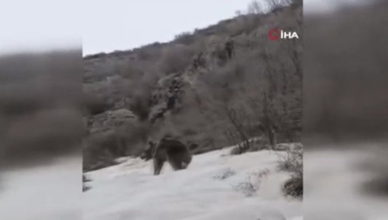 Hakkari'nin Şemdinli ilçesinde kış uykusundan uyanan ayılar, yollarda görüntülendi. Kış uykusundan uyanan bir ayıyı, yiyecek ararken vatandaşlar görüntüledi.