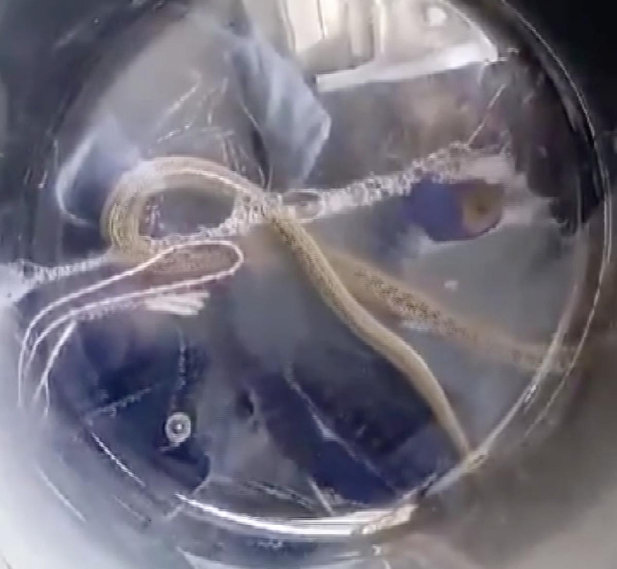 Hakkari'nin Derecik ilçesine bağlı Yeşilova köyünde, eve giren yılan, çamaşır makinesinde görüldü.