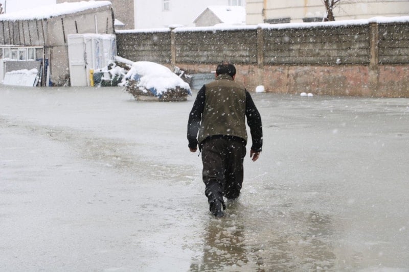 Özellikle Yeni Mahalle’de birçok evin önü suyla kaplanırken, bazı kişiler evlerinden çıkmakta güçlük çekti.