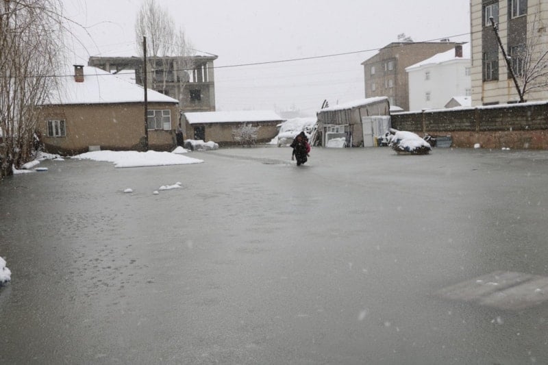 Hakkari Yüksekova'da karların erimesi sonucu altyapının yetersiz olduğu alanlarda su birikintileri oluştu.