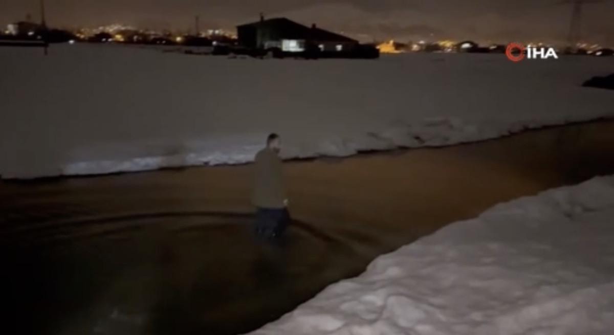 Kar suları ve yağışlar evin etrafını göle çevirdi