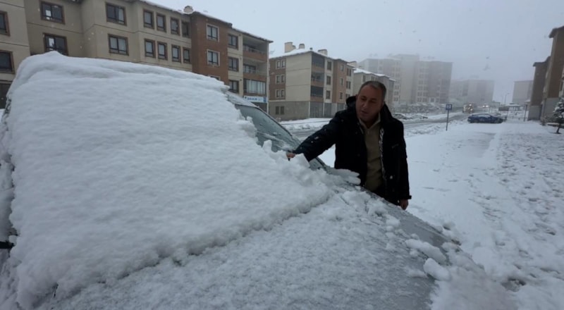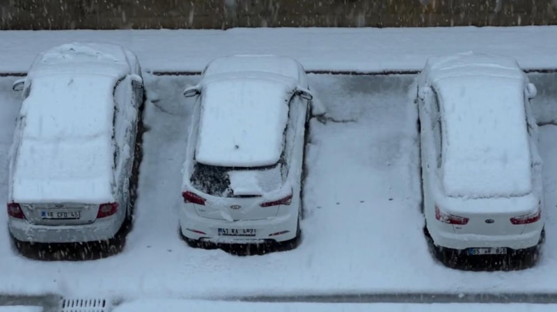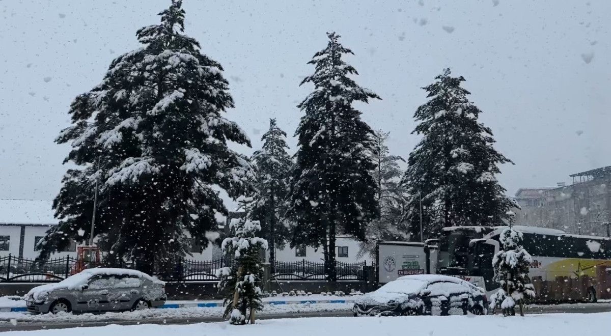 Yoğun kar yağışı nedeniyle kar kalınlığı yer yer 10 santimetreyi bulurken, cadde ve sokaklarda park halinde bulunan araçlar tamamen kar altında kaldı.