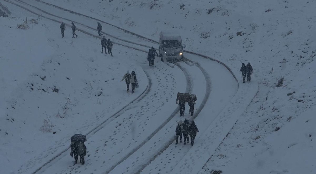 - Kar nedeniyle araçlar kar altında kalırken, görüş mesafesi 20 metreye düştü.