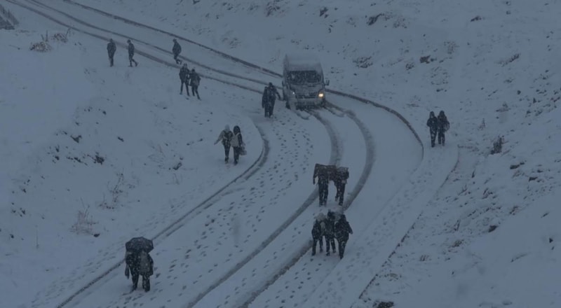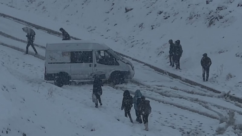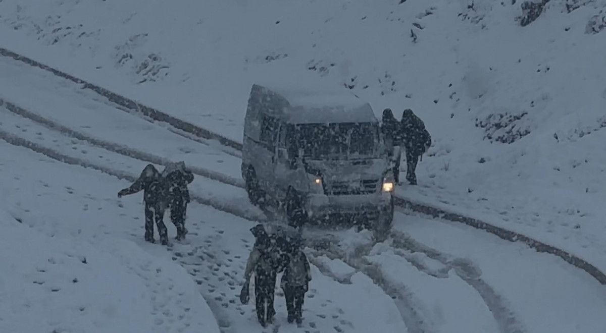 Özellikle yokuşlu yollarda ilerlemekte güçlük çeken bazı araçlar yolda mahsur kalırken, sürücülerin yardımına diğer vatandaşlar koştu.