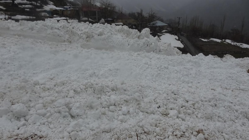 Hakkari'nin Yüksekova ilçesine 40 kilometre uzaklıktaki Yeşiltaş köyünde etkili olan kar yağışının ardından köyün merkezine çığ indi