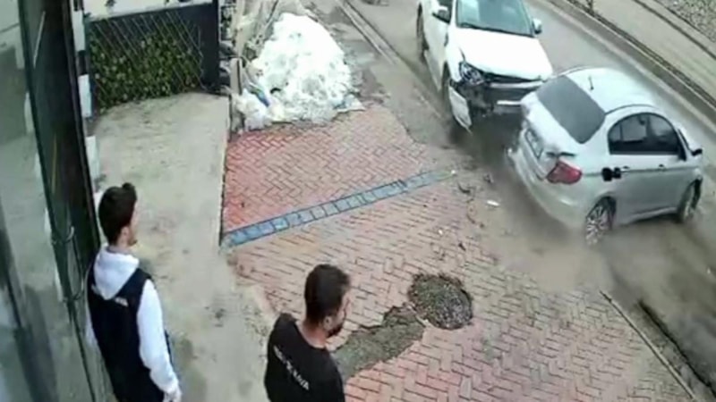 Kaza anı güvenlik kamerasına saniye saniye yansıdı.