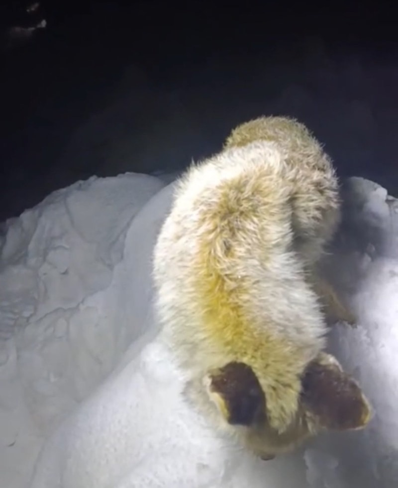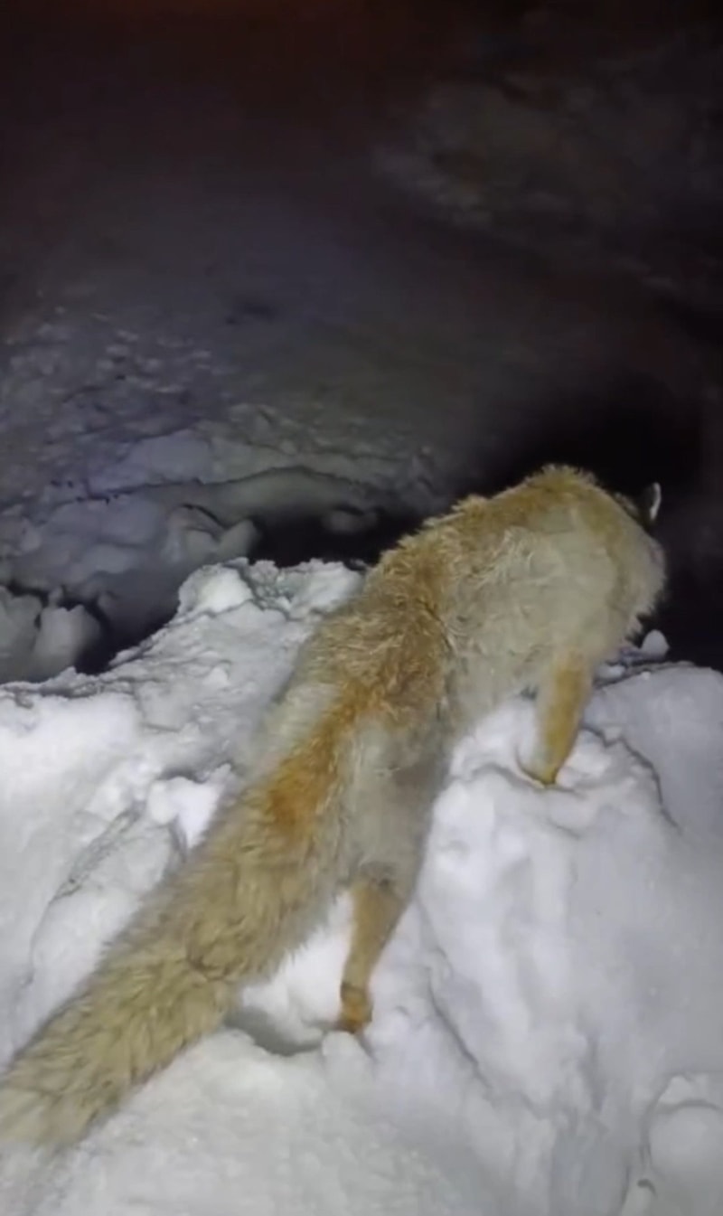 Bölgedeki zorlu kış mevsimine dikkat çeken mahalle muhtarı Arif Genç, "Kar kütlesinin üzerinde bir tilkinin hiç hareket etmeden durduğunu gördük.