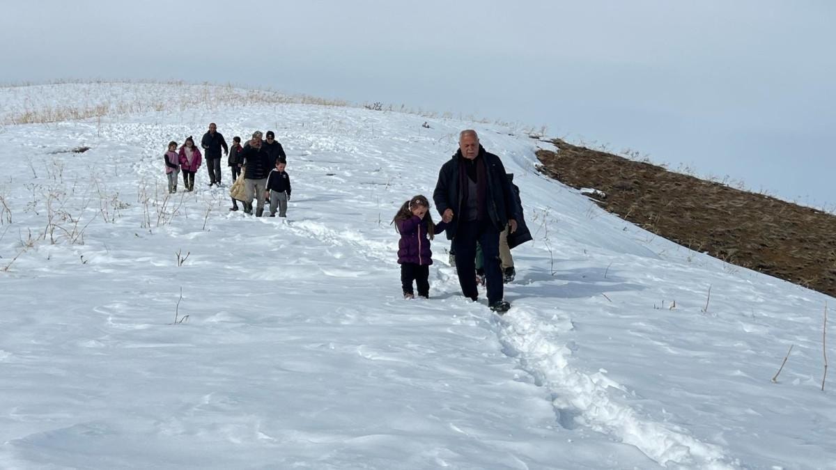 Kar kalınlığının yarım metreyi geçtiği mezrada acil hastası olan ya da uzaktaki yakınları ile görüşmek isteyenler, her seferinde 1 kilometrelik yolu yürümek zorunda kalıyor.