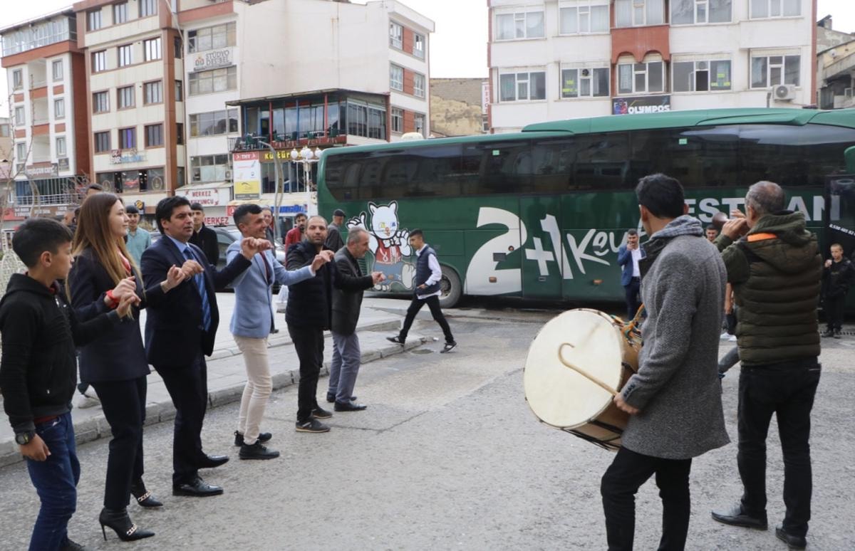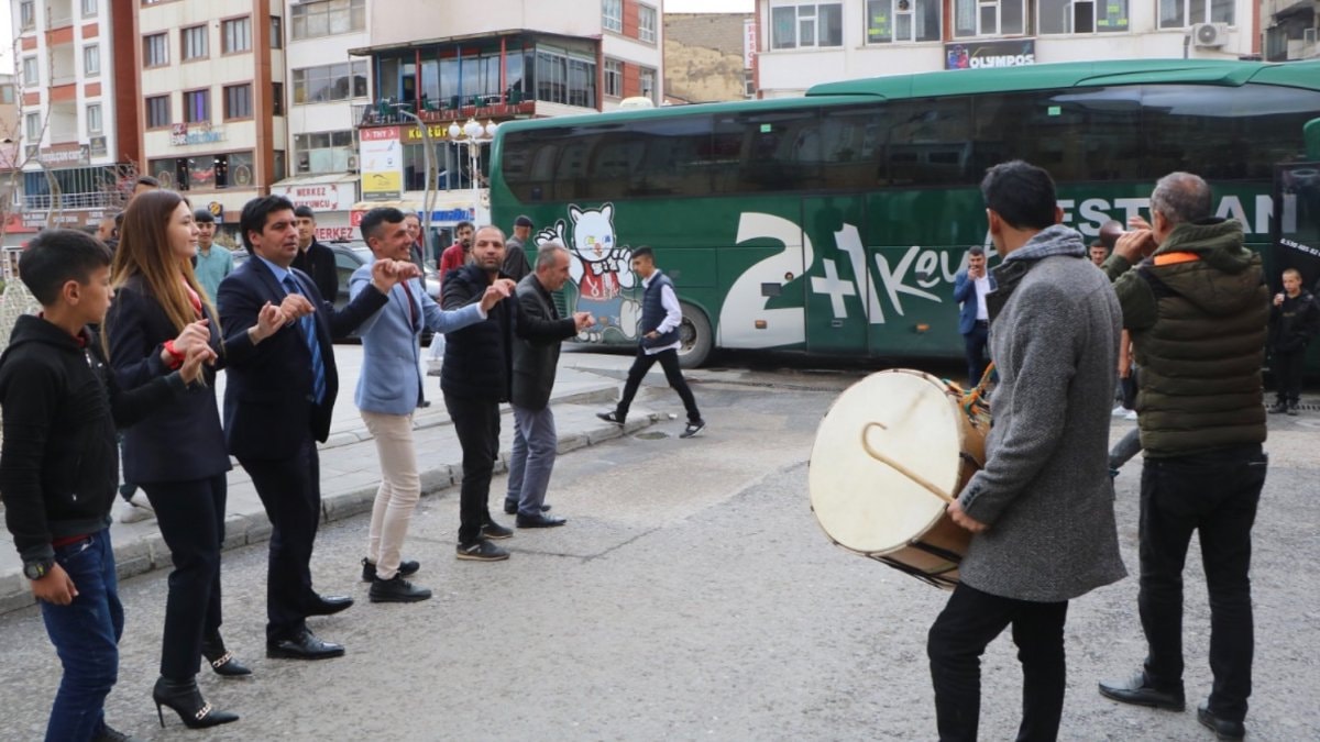 Şehirlerarası otobüs seferlerinin başlandığını duyan vatandaşlar, araçları ile kente giriş yapan bir firmaya ait otobüsü karşıladı. Karşılamaya gelenler, çalınan davul zurna eşliğinde halaylar çekti.