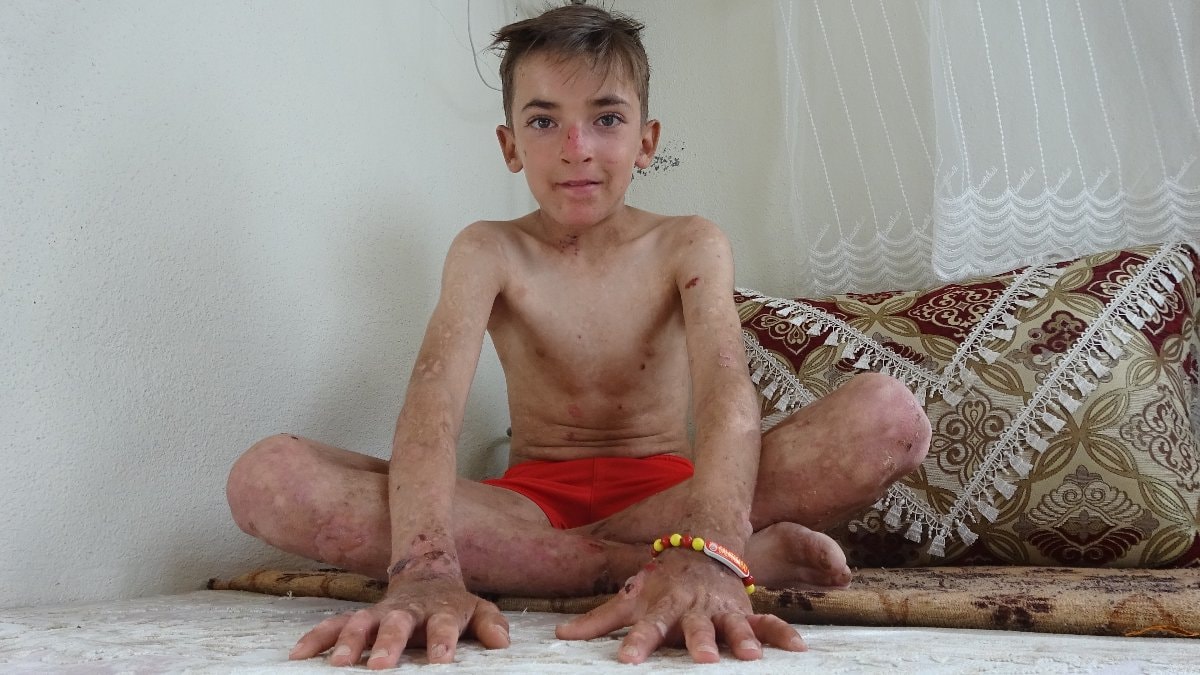 Su torbalarının patlaması sonucu oluşan yaralardan dolayı sürekli kaşınan ve görünümü nedeniyle arkadaşlarının dalga geçtiği Amar Yaşar, tedavi olmak istiyor.