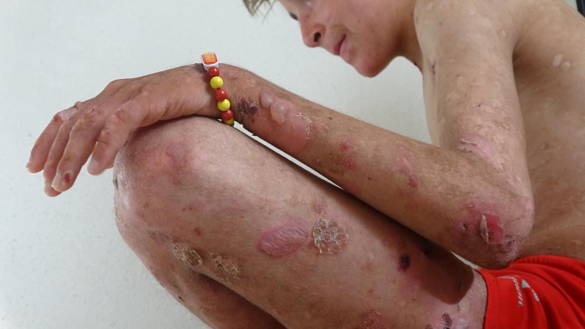 Anne Besna Yaşar ise çocuğunun bu durumuna çok üzüldüğünü söyleyerek, "Çocuğum doğuştan beri böyle. Doktorlar 'Bülloz Pemfigoid' hastalığı teşhisi koydu. Kışın iyi fakat yazın sıcak hava nedeniyle yaraları daha belirgin ve kötü oluyor. Yazın günde 5 defa elbiselerini değiştiriyorum. Okulda arkadaşları onunla dalga geçiyor. Tedavisi için destek bekliyoruz" diye konuştu.