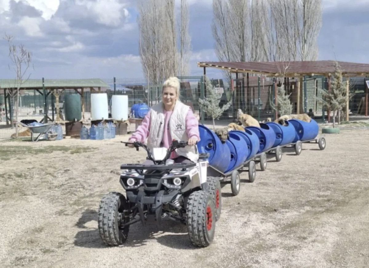 Özgünlü Boyacı, Siverek'te barınaktan sahiplendiği 35 köpeği, Ankara'ya getirdi.