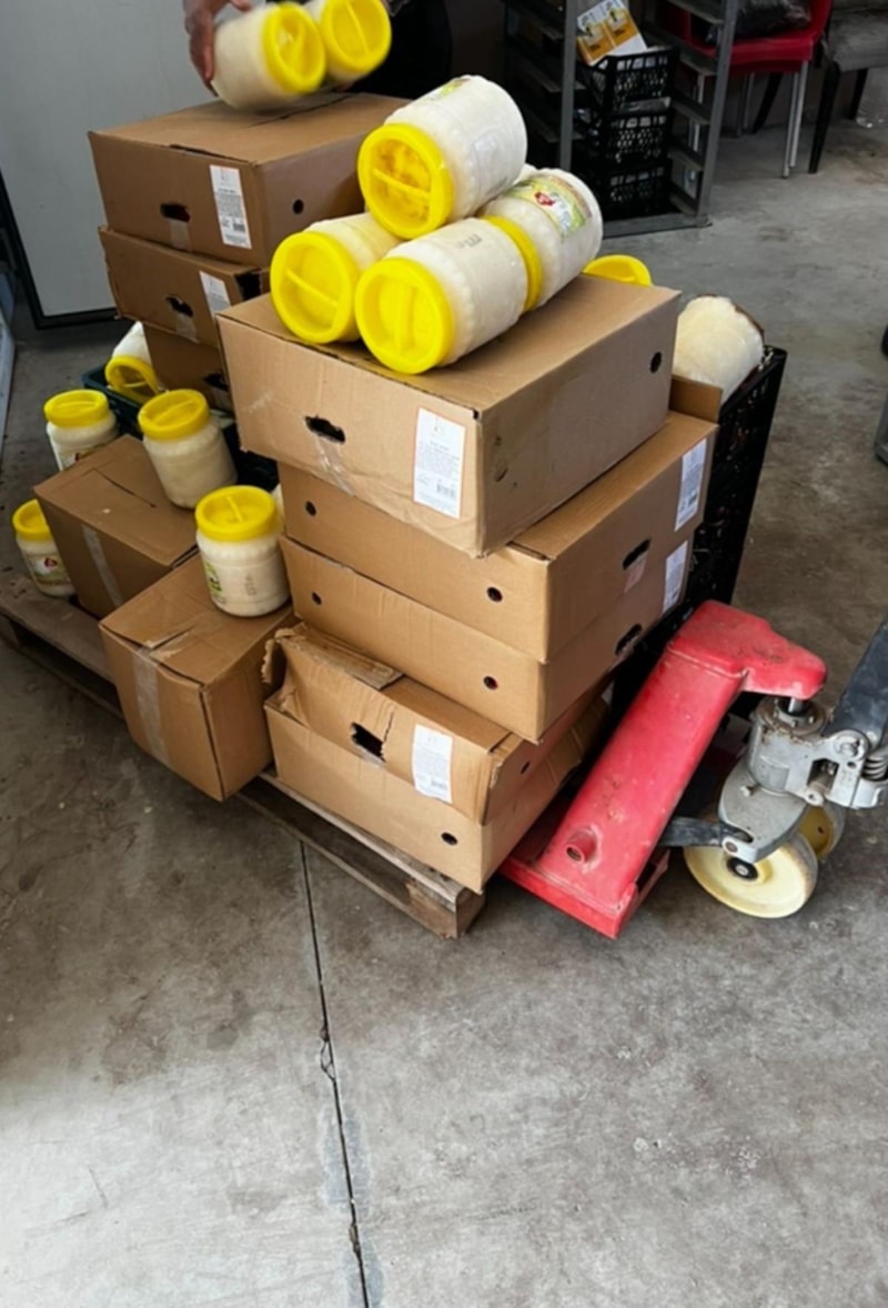 Ekipler tarafından ele geçirilen sucuk, peynir, ketçaptan gıda malzemeleri toprağa gömülmek imha edildi.