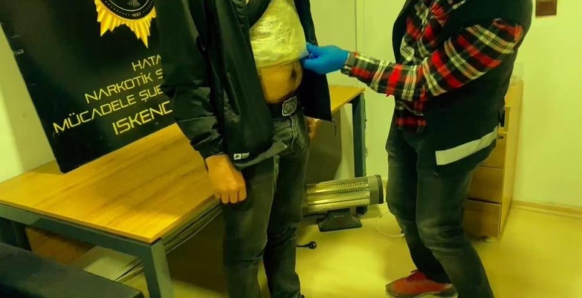 Otobüsteki A.K. ve N.C. isimli yolcuların yapılan üst aramasında karın bölgelerine gizlenmiş sarılı şekilde 977 gram uyuşturucu madde ele geçirildi.