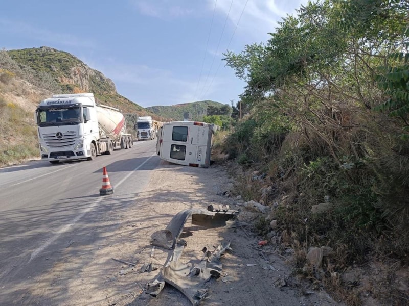 Diğer minibüs ise çarpışmayla zeytin bahçesine uçtu.