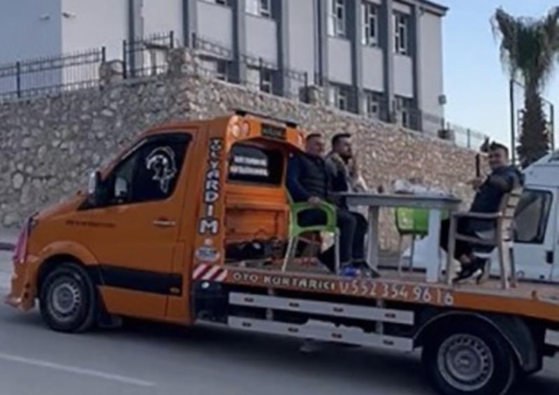 Canlarının sıkıldığı için arkadaşlarıyla birlikte çekicinin üzerine masa ve sandalye koyarak şehir turuna çıktıklarını ifade eden Cemil Mailoğlu, şöyle konuştu: