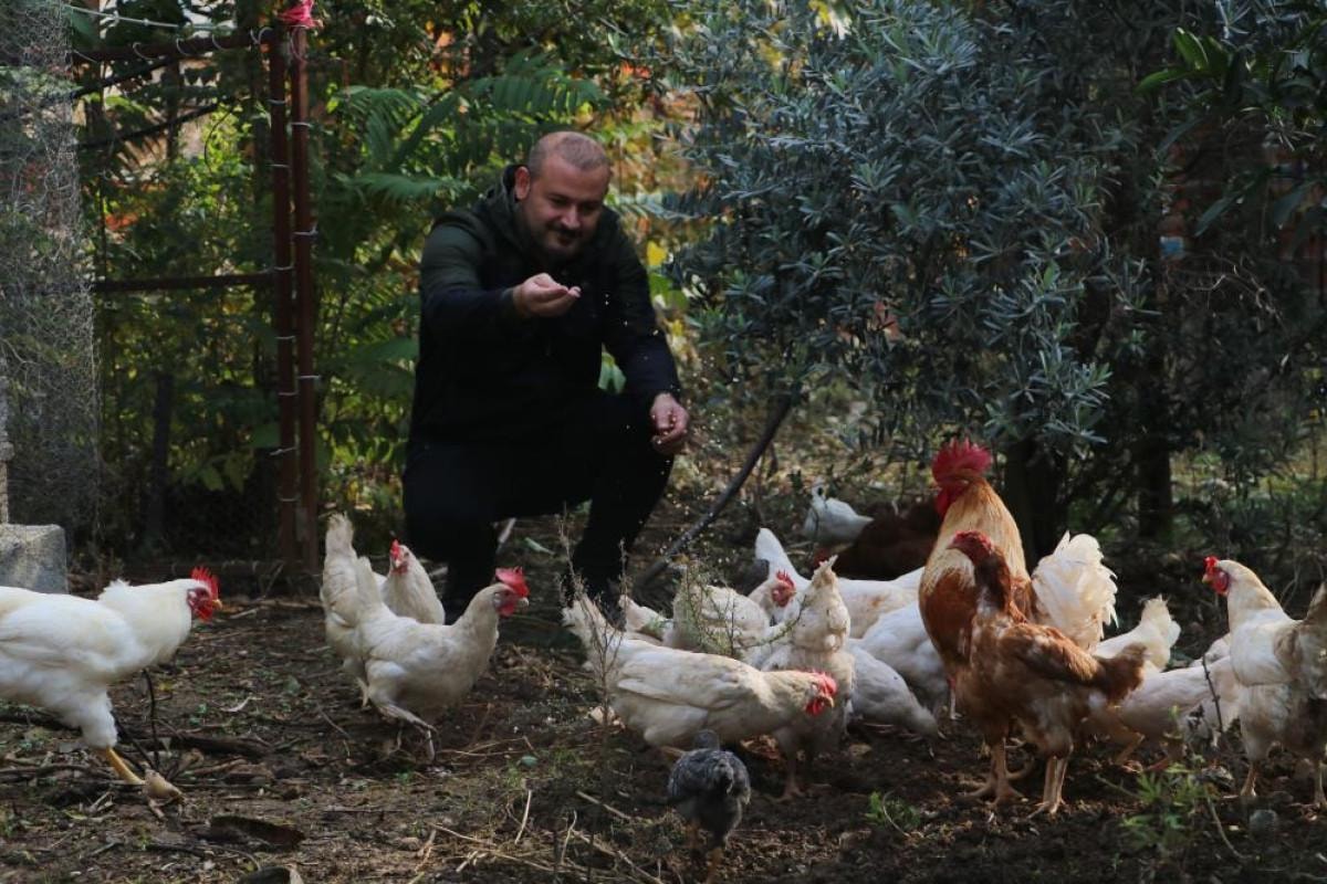 Hatay'ın Harbiye Mahallesi’nde arıcılık yapan İsmail Akyüz, çiftliğinde tavuk beslemeye başladı.