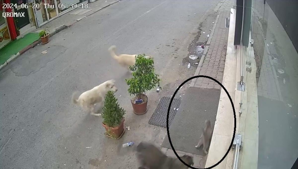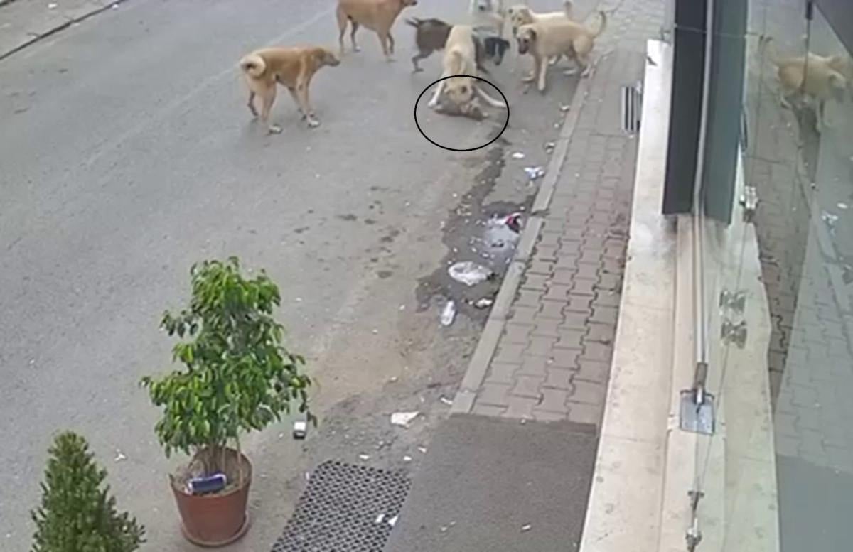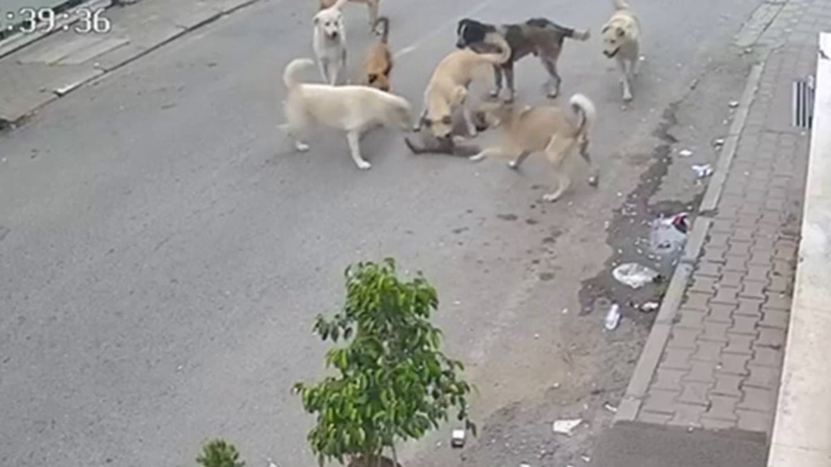 Kan donduran görüntülerde; sokak köpeklerinin kedinin etrafını sardığı ve ağızlarında parçaladıkları anlar kameraya yansıdı. Mahallede yaşayan vatandaşlarsa köpeklere tepki gösterdiler.
