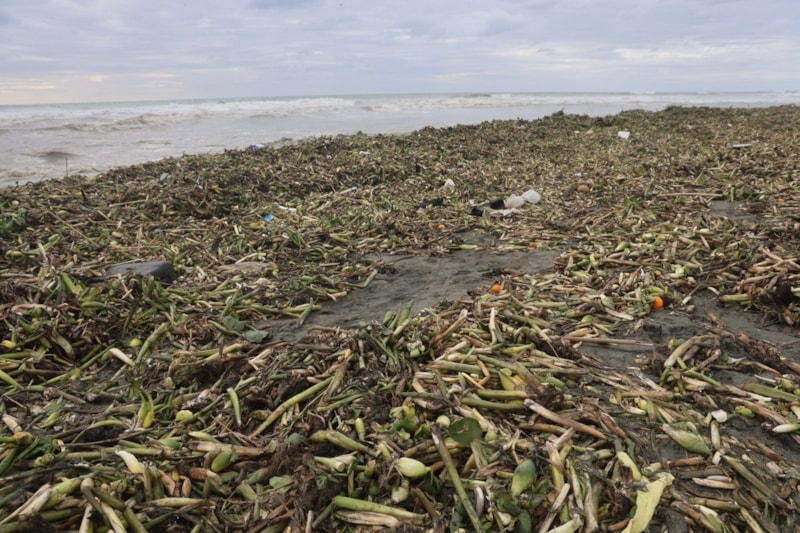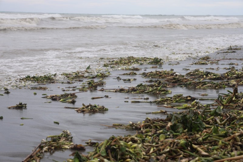 Yaz aylarında Asi Nehri'ni kaplayan istilacı su sümbülleri, nehrin debisindeki artışla birlikte Akdeniz'e sürüklendi. Akdeniz'de yaşanan şiddetli dalgalarla birlikte su sümbülleri, Samandağ ilçesinde sahile vurdu ve sahil yeşile büründü.