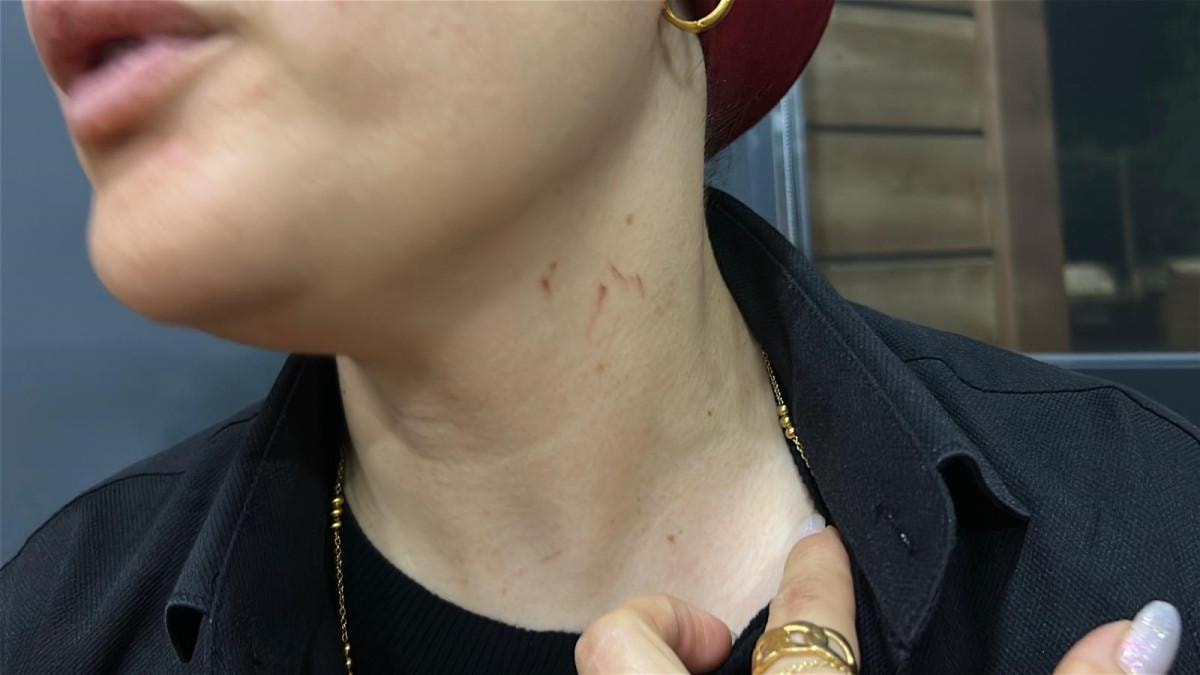 Vatandaşlar araya girdi ama bırakmadı, 3-4 dakika boyunca boğuşma yaşandı. O esnada inci ve altın kolyem koptu, olaydan sonra bulunamadı.