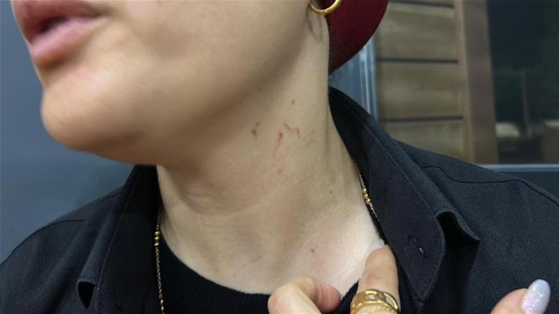 Saldırgan şahıs, cep telefonu kamerasına yansıyan anlarda şarkıcı kadının boğazını sıkarak zor anlar yaşattı.
