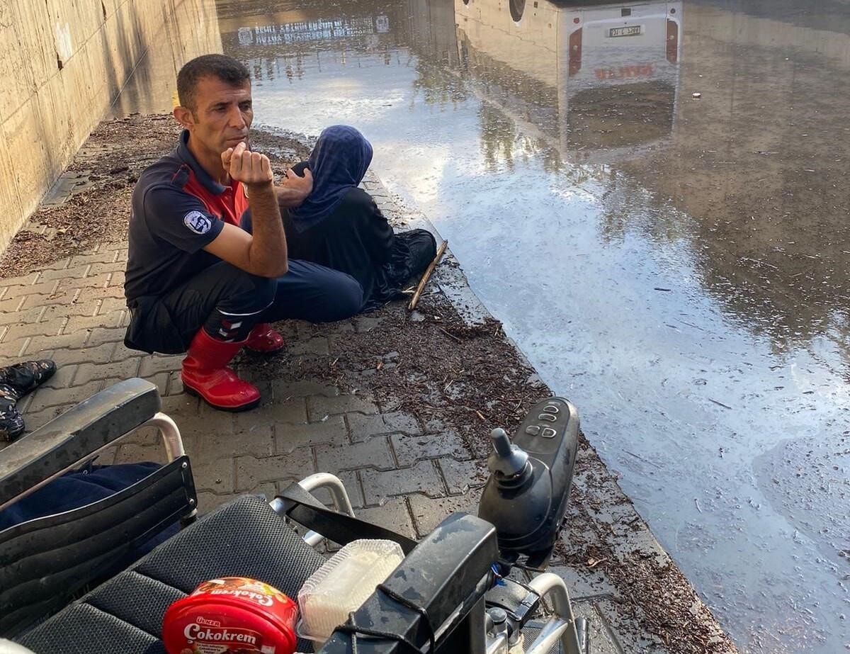 Yoğun yağıştan dolayı Şehit Yetkin Erşan Alt Geçidi de suyla dolarken, alt geçitte akülü aracıyla ilerlemeye çalışan yaşlı bir kadın mahsur kaldı.