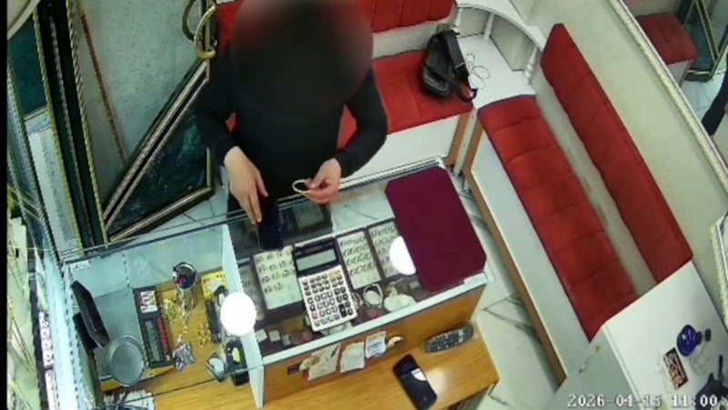 Şüpheliler, altınların bir kısmını satmak için gittikleri kuyumcuda güvenlik kamerasına yansıdı.